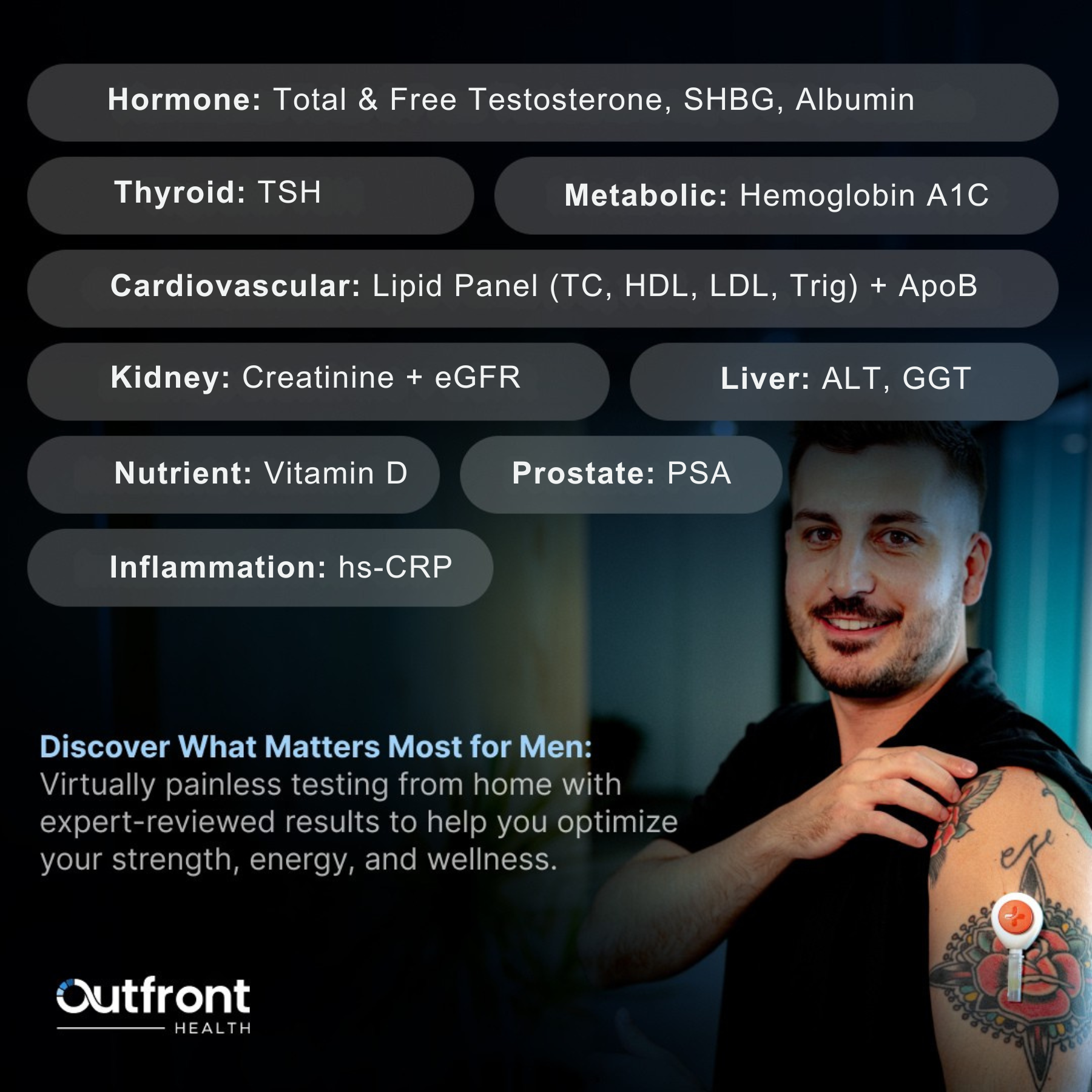 As you age, subtle shifts in hormones, inflammation, or organ function can impact everything from mood and metabolism to cardiovascular and prostate health. This panel helps you detect issues early and make smarter decisions about your health trajectory.